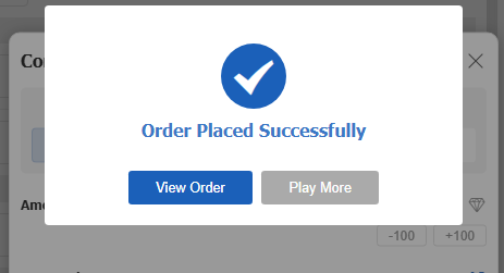 - Placing 300 diamonds on Under → 200 matched immediately, remaining 100 queued and awaiting processing.