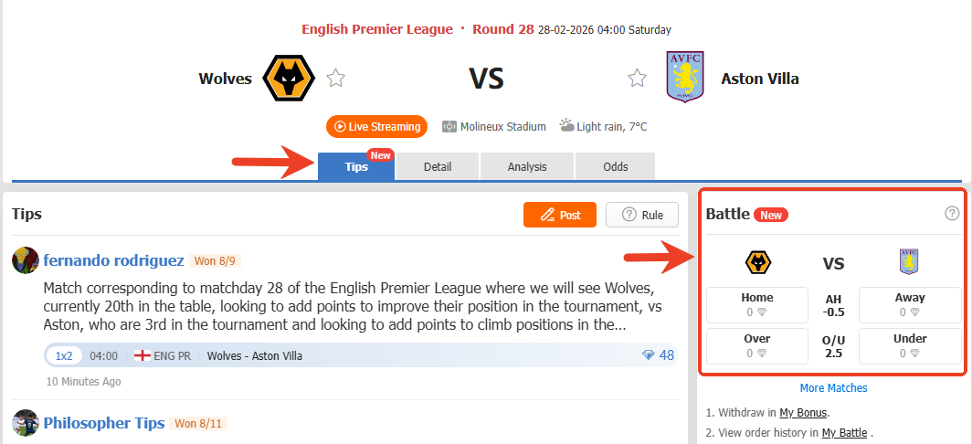 3. Order Matching: If the home team's Over shows 200 and Under shows -200, it means the Over option currently has 200 more diamonds than the Under. In this case: